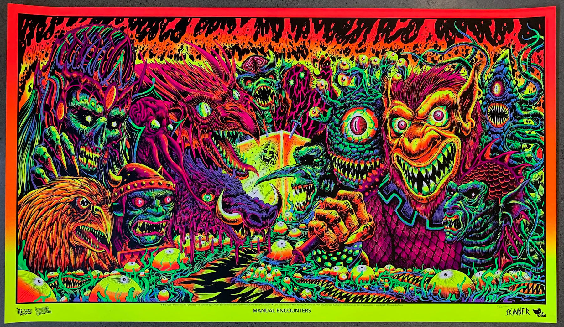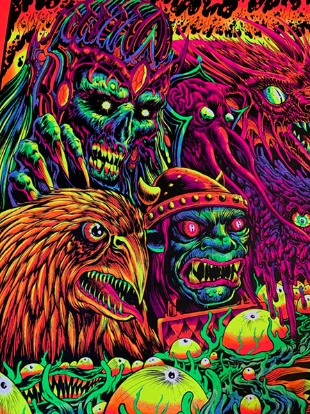 Mazes and monsters lava foil version Run of 150 24 x 36 11 color screen print on lava foil paper, Black Lite Reactive Signed and numbered $150